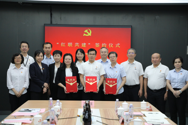 雙橋公司黨委同南沙珠江啤酒黨委、工行廣州琶洲人工智能與數字經濟試驗區支行黨委舉行三方“紅聯共建”簽約儀式