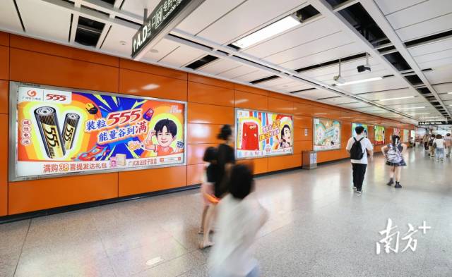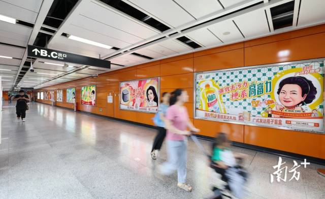 步入廣州磨碟沙地鐵站,一個大型的“發(fā)達”互動裝置,廣州人熟悉的“8月氛圍感”瞬間拉滿。進入地鐵站內(nèi),映入眼簾的還有廣州輕工集團旗下15個廣貨品牌的“粵味”地鐵廣告,無論是親切的粵語廣告語還是拍拍好運氣的互動裝置,都讓市民朋友感受到濃厚的粵式人情味。