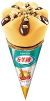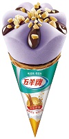 五羊甜筒經典口味系列(產品圖片二):香脆的蛋筒包裹著幼滑的香芋味、哈蜜瓜味、巧克力味、菠蘿味、雙皮奶味及榴蓮口味雪糕,香脆花生,順滑口感,與表面的巧克力味涂層相互配合,啖啖好味。6種誘惑6種選擇,將成為與你永遠相伴的經典。
